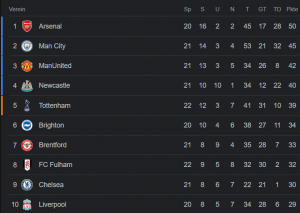 Premier League Tabelle Stand 06.02.23